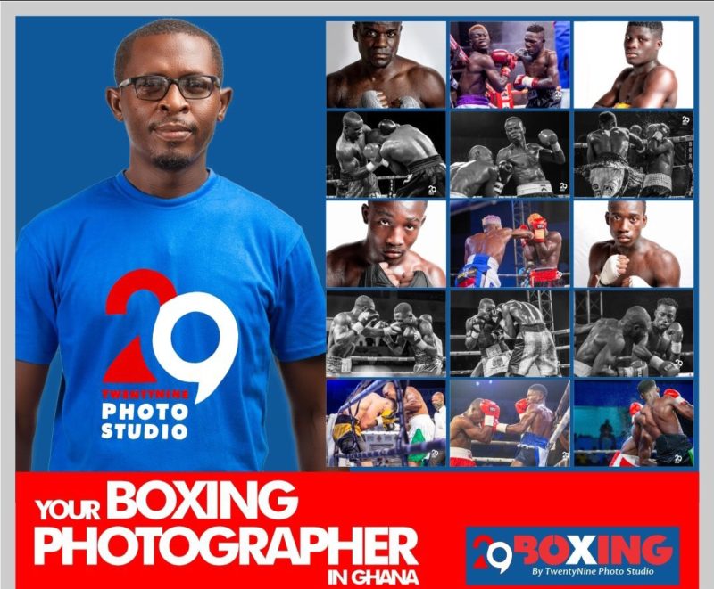His love for boxing did not end with getting boxing lovers the brilliant emotional shots but also urged him to sign on *Sarah Apew* from the National Amature Team as the face of 29photostudio in his bid to help her in promoting her trade and also project Female Boxing in Ghana.