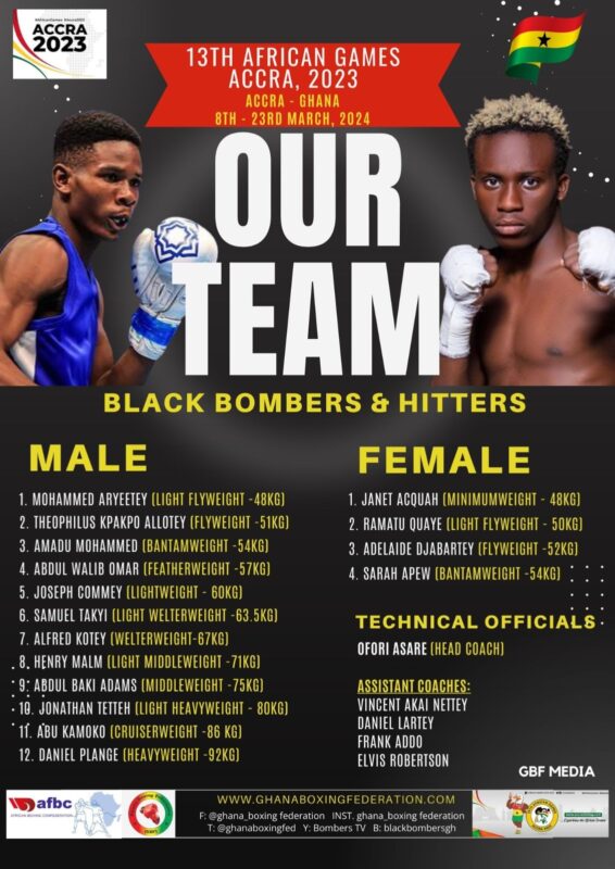 Ghana’s wonderboy at the Tokyo 2020 Olympics Samuel Takyi & the new sensation are set to lead the Ghana national boxing teams, Men and Women(Black Bombers and Hitters) in their quest to make a big impression at home in the 13th Africa Games also known as Accra 2023 in Accra.