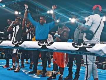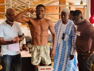 Quaye (18 – 0, 15 KOs), delivered a short left hook to the chin and followed with a straight right hook to the chest sending his opponent to the canvas. Quaye attacked Sarouna after the count with a scathing straight right to his face falling heavily on the ropes and then to the canvas again. Refree Shadrack Acquaye counted and waved to signal the end of the fight.
