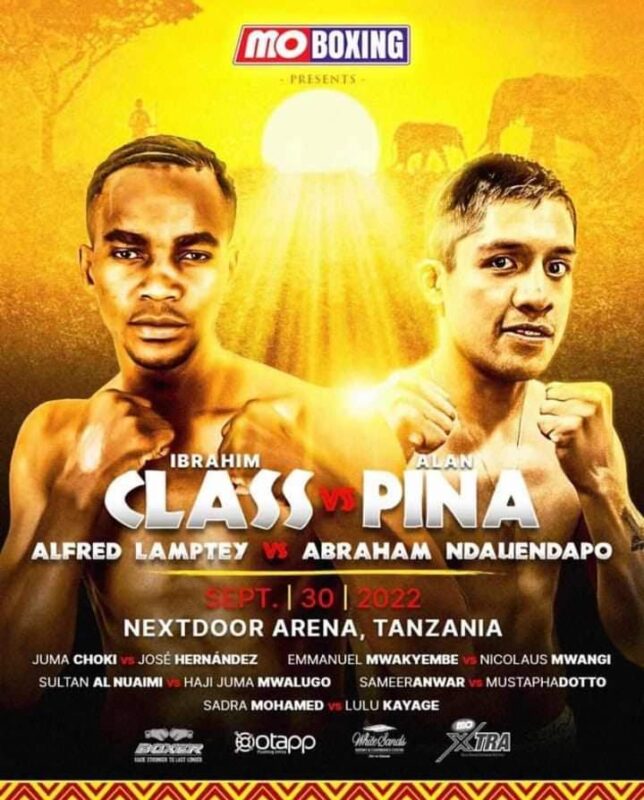 Ghana’s former national super featherweight champion Alfred Lamptey (11-0, 9 KOs) will travel to Tanzania to meet Abraham Ndauendapo, a former IBF Continental Champion from Namibia on September 30.