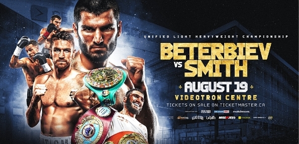 Montreal resident Artur Beterbiev, the unified WBC/WBO/IBF light heavyweight world champion, will defend his belts against WBC No. 1 contender Callum “Mundo” Smith on Saturday, Aug. 19 at Videotron Centre in Québec City, Canada.