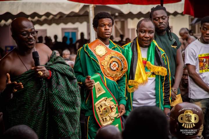 Stanley Nyantakyi, popularly known as Ashanti Warrior, has presented his National Featherweight Belt to Asantehene Otumfuo Osei Tutu II during the April 8 sitting of the Kumasi Traditional Council.