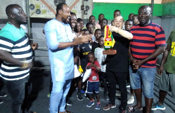 The British and Irish Boxing Association (BIBA) President, Mr Gianluca Di Caro on Friday paid a historic visit to the Bronx Boxing Gym at James Town in Accra., Ghana.