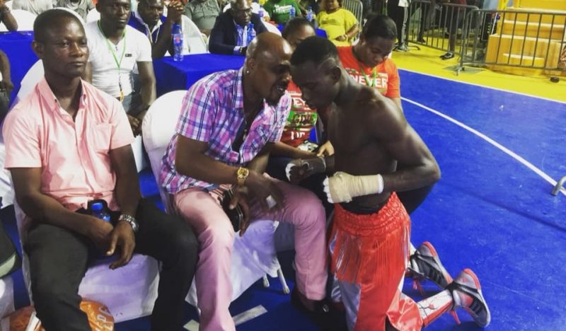 Alfred Lamptey, the young prodigy who is known as the Bukom Bomber boxed his way to defeat good Raymond Commey on a unanimous decision. After the fight he showed respect to the veteran boxer also known as Chorkor Banku.