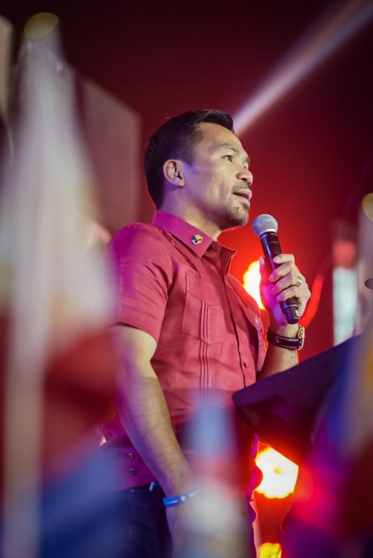 “We need progress, we need to win against poverty, we need government to serve our people with integrity, compassion and transparency,” Pacquiao said. “We are fed up with the promises of change.”