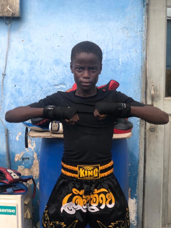 The boxer is a student at the Korle Gonno Methodist Basic School in class 4.