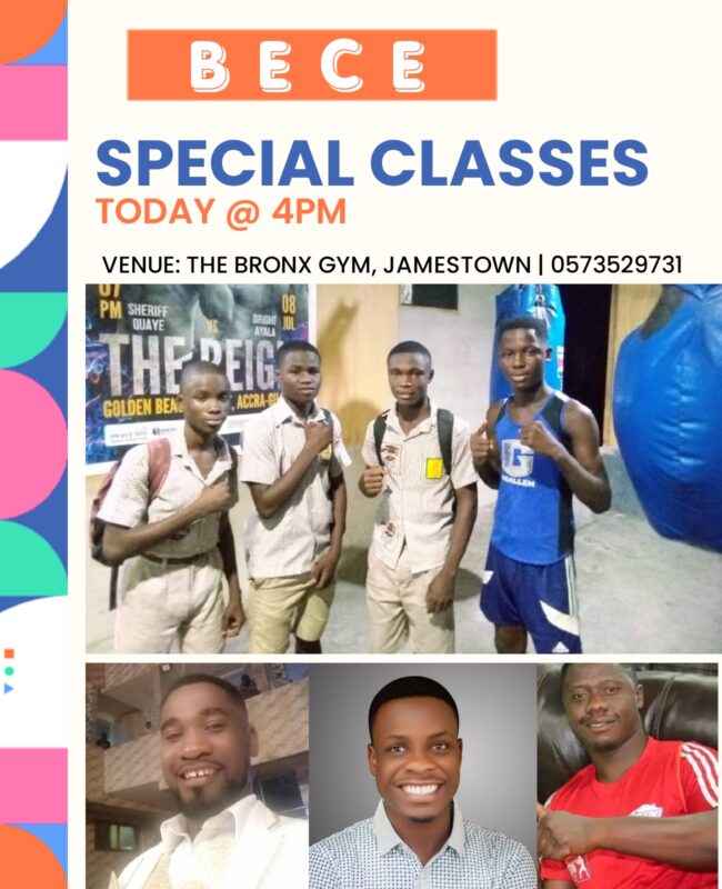 Boxing Writer Sam Nana Gold in collaboration with the BRONX Boxing Gym in Accra is putting together a special class for young boxers who are preparing for the upcoming Basic Education Certificate Examination (BECE) which begins on Monday.
