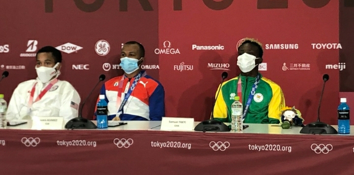 At the Press Conference after the presentation of medals to winners of the 57kg boxing, Yours Truly asked the American how he sees Takyi and he described him as a very good boxer with the potential of becoming a future Olympic Gold medalist.