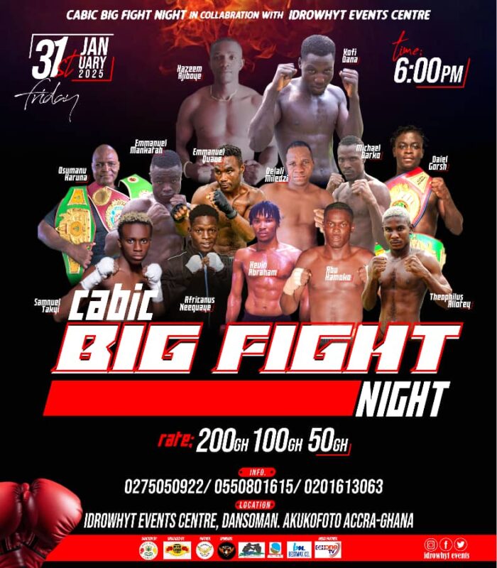 This Friday, January 31, at the Idrowhyt Events Centre in Dansoman, Accra, award winning promotional juggernaut; Cabic Boxing Promotions sets up a titillating array of champions, contenders and prospects.