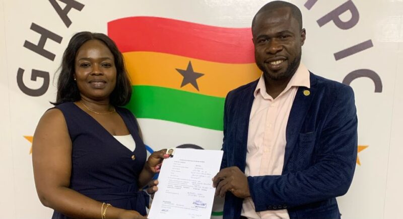 Akpokavie who faces challenge from Michael Aggrey, former President of Ghana Golf Association and Chef du Mission of Tokyo 2020 submitted his nomination forms to Ms. Cynthia Wintima Akudugu,