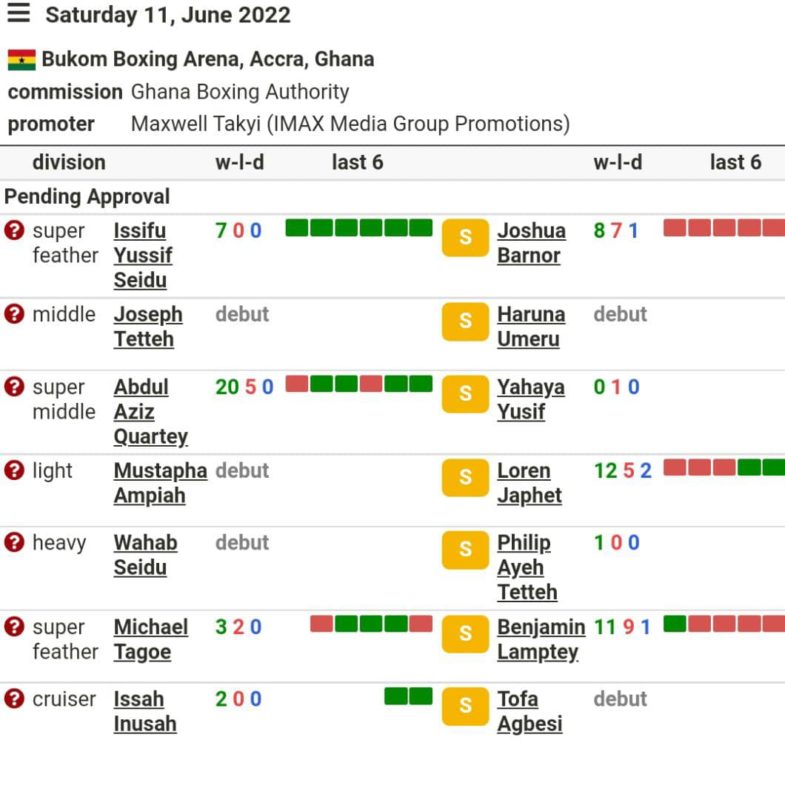 The 6th fight night of the Ghana Professional Boxing League is scheduled for Saturday 11 June, 2022. This event marks the return of fighting season post ban on drumming and noise making.