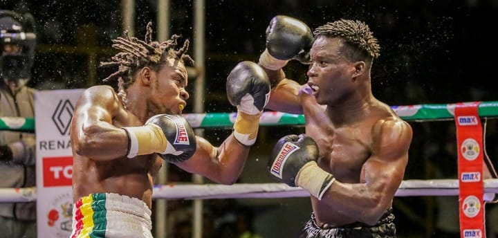 Ernest Ampah and Pascal Adjibude Otchoun gave fans a good fight in the super lightweight division which ended in a draw as the judges scored 57-57, 57-57, and 57-57.