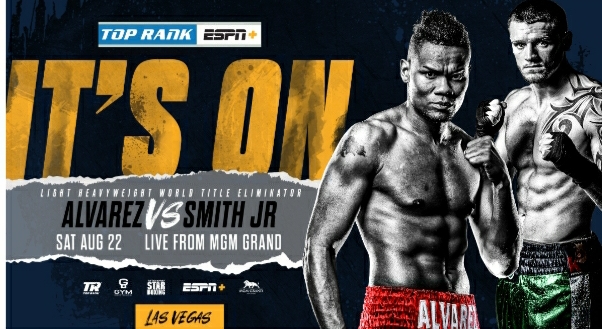 Alvarez and Smith will face off in a WBO light heavyweight world title eliminator in Top Rank’s return to the MGM Grand Conference Center Saturday, Aug. 22. Promoted by Top Rank, in association with Joe DeGuardia’s Star Boxing and Groupe Yvon Michel (GYM), Alvarez vs. Smith and a co-feature will stream live on ESPN+ starting at 10 p.m. ET/7 p.m. PT.