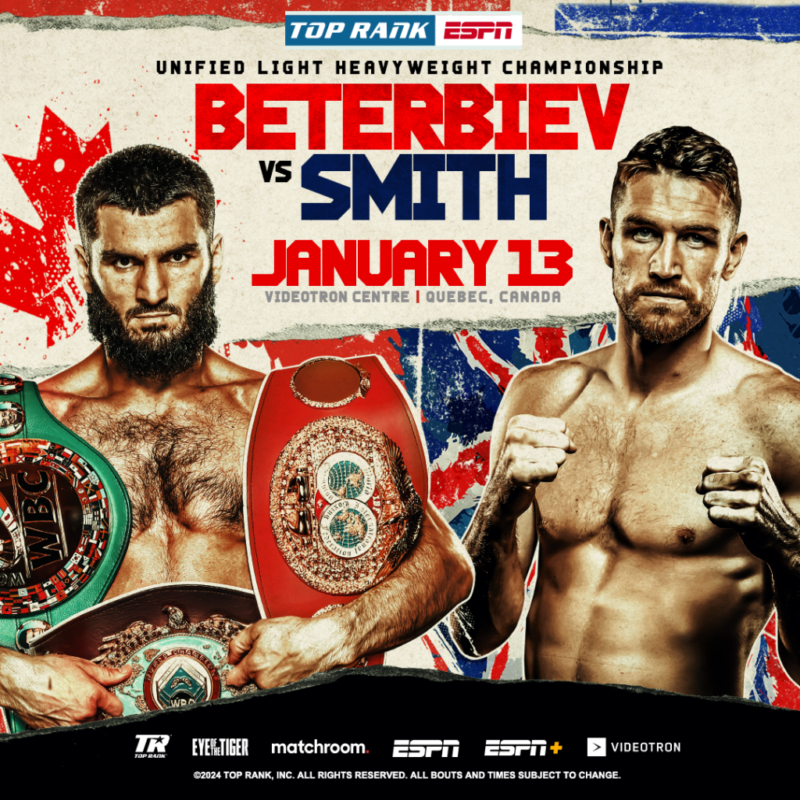 Liverpool, England’s Smith is scheduled to take on unified WBC, WBO, IBF 175-pound champion Beterbiev on Jan. 13 at Centre Videotron in Quebec City.