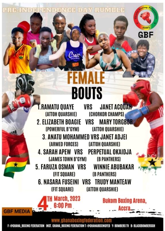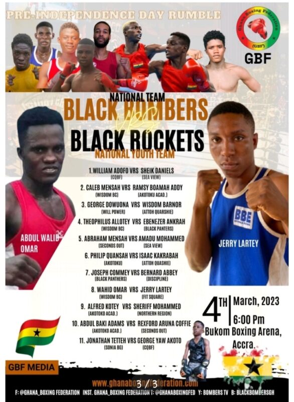 The Ghana Boxing Federation (GBF) ahead of the Independence Day celebrations, will be organising a boxing event, dubbed Pre-Independence Day Rumble at the Bukom Boxing Arena on 4th March, 2023.