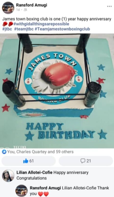 Jamestown Boxing Club, one of the newest Boxing clubs in Accra is a year old since it began operations. The club head Coach Ransford Amugi took to social media to announce and wish the team well.