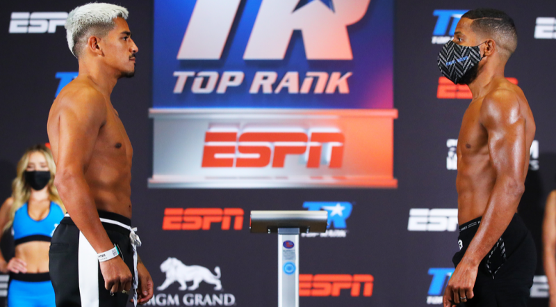 The former world champion Magdaleno originally weighed in at 128.2 pounds initially, but was able to strip down and come in at 127.9. whiles Vicente, weighed in at 126.5.