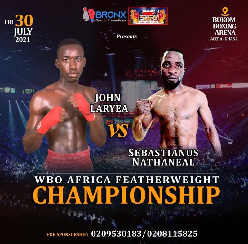 Bronx Boxing Promotion presents John ‘ExpensiveBoxer’ Laryea vs Sebastianus Nathaneal in the WBO Africa Featherweight Championship bout at the Bukom Boxing Arena on the 30th of July 2021.