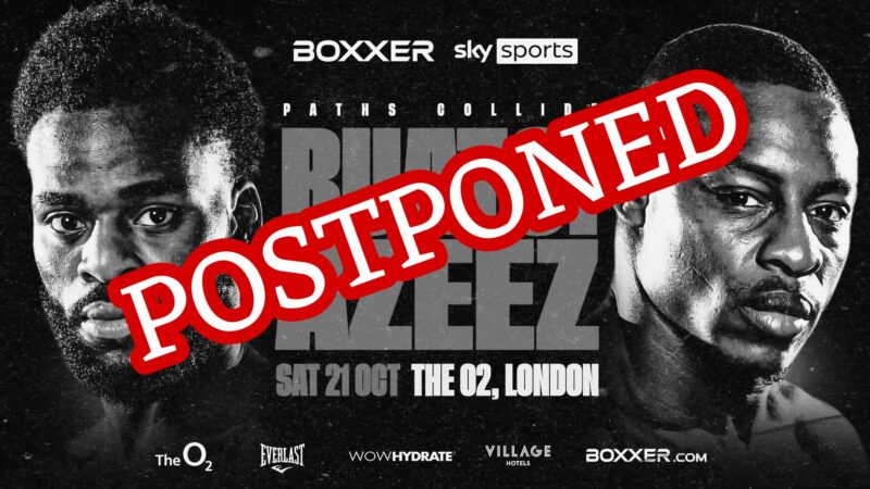 Promoter BOXXER announced Tuesday afternoon that their 12-round, 175-pound bout will be rescheduled. The unbeaten Brits were scheduled to square off Saturday night in a main event at O2 Arena in London.