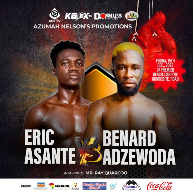 Eric Asante versus Bernard Adzewoda and David Tagoe paired up with Godwin Tetteh. There are other must see matchups including juvenile bouts.