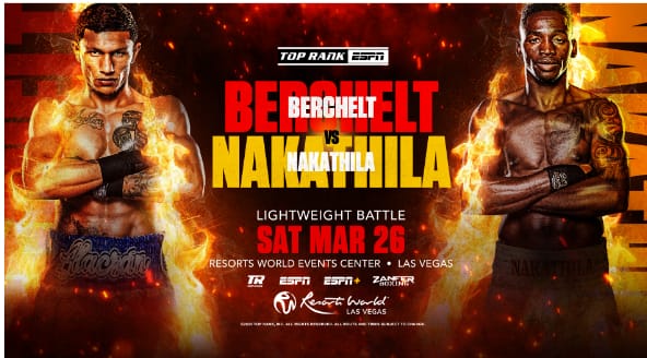Nakathila said, “It’s an amazing opportunity to fight Berchelt. Given our styles, it will make for a highly entertaining fight. This is my lightweight debut, and I’m looking forward to my first win against a highly rated former champion.”