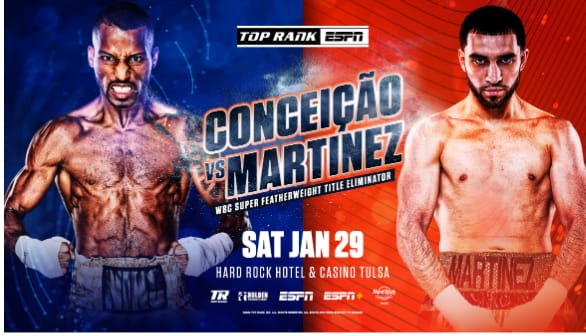 U.S. Olympian Tiger Johnson, Brooklyn-born phenom Bruce “Shu Shu” Carrington and Nico Ali Walsh, grandson of “The Greatest,” are among the rising stars who will fight Saturday, Jan. 29 at Hard Rock Hotel & Casino Tulsa. The bill is topped by the 10-round WBC 130-pound title eliminator between Robson Conceição and Xavier Martinez, and a 10-round junior lightweight co-feature featuring Mexican grinder Rene Tellez Giron and Puerto Rican contender Luis Melendez.