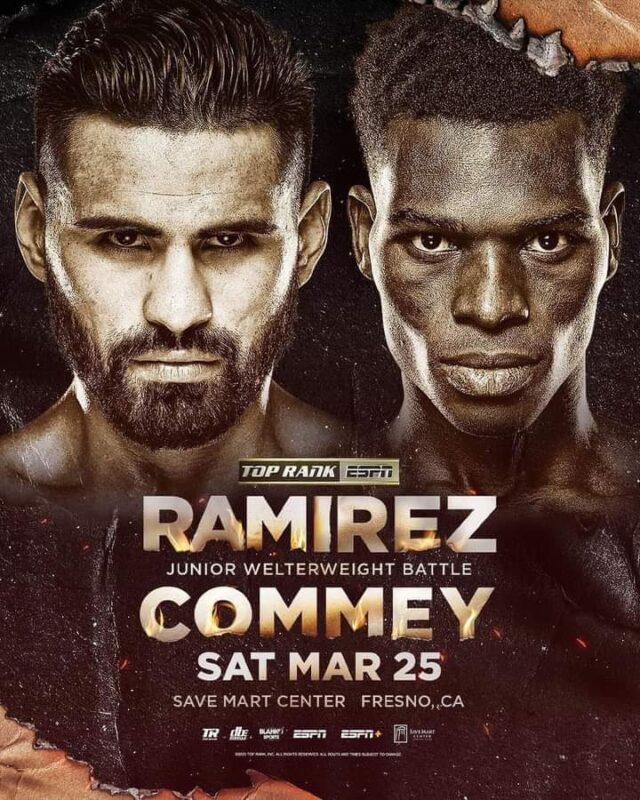 “Fresno and the Save Mart Center hold a special place in my heart, and I am blessed to be able fight in front of my Central Valley fans once again,” Ramirez said. “Richard Commey is a championship fighter with everything to gain. I expect the best version of Commey on March 25. My goal is to become champion again, and I am more motivated than ever to prove that I am the best junior welterweight in the world.”