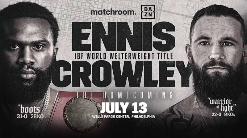 Jaron “Boots” Ennis will defend his welterweight title against Cody Crowley at Wells Fargo Center in Philadelphia on Saturday, July 13, Matchroom Boxing announced Thursday.