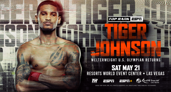 The welterweight standout will get a chance to put his skills on display in prime time as he fights an opponent to be named in a six-round special feature Saturday, May 21, at the Resorts World Event Center at Resorts World Las Vegas. Johnson’s bout will open the ESPN telecast of the Janibek Alimkhanuly-Danny Dignum WBO Interim middleweight world title bout.