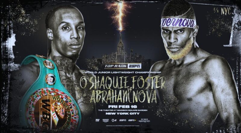 “O’Shaquie Foster wants to prove he is the best junior lightweight in the world, and he’ll have an opportunity to make that statement February 16 against a determined, powerful challenger in Abraham Nova,” said Top Rank chairman Bob Arum. “I look forward to another great fight night at The Theater at Madison Square Garden.”
