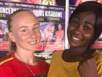 Lucy won on split points decision over Flora from Tanzania. The judges scored 77 – 78, 80 -74, 80 -72 for the UK based female boxer. She thanked the fans for the massive support.