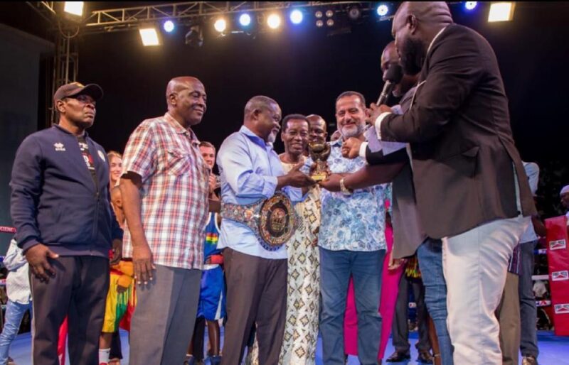 Miss Sarah Lotus Asare, Secretary of WBC Cares Africa presented a special title belt to the champion in the ring.