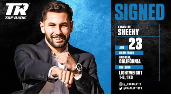 Lightweight prospect Charlie Sheehy (1-0, 1 KO), a 23-year-old former Team USA amateur standout from the Bay Area town of Brisbane, California, has signed a multi-year professional contract with Top Rank.