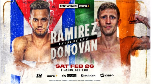 Two-time Cuban Olympic gold medalist Robeisy “El Tren” Ramirez will cross the pond to battle Irish veteran Eric Donovan in a 10-round featherweight battle Saturday, Feb. 26 at OVO Hydro in Glasgow, Scotland.