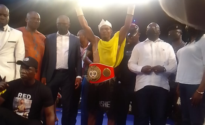 Ashie, a former African Boxing Union champion, the fans favorite was decorated with the IBF title belt by HE Mahamadou Bawumia, the vice president of the republic of Ghana, with the support of the Minister of Youth and Sports, Hon. Mustapha Ussif.