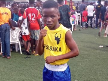 12 years old Samuel Plange, who was voted Best Juvenile Boxer at the 2023 Greater Accra Ga Homowo Boxing Tournament on Monday presented his awards to his school, Prince De Henry Educational Complex at Laterbiokorshie in Accra.