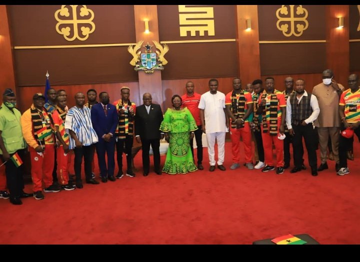 Samuel ‘Ring Warrior’ Takyi who fought on to win the only laurel at the Olympic games together with the team paid a courtesy call on the President of the Republic of Ghana, His Excellency Nana Addo Dankwah Akufo-Addo.