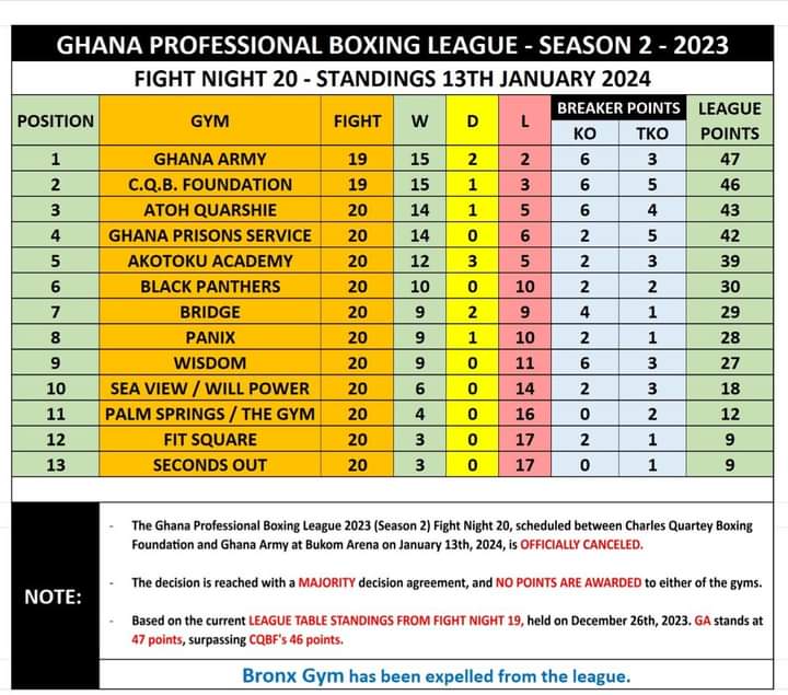 Promoters of the Ghana Professional Boxing League, Imax Boxing Promotions have released the official results and league table standings at the end of Season 2 of the exciting programme.