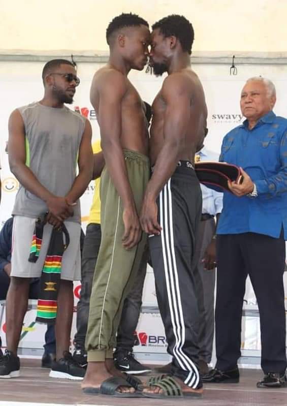 Sheriff Quaye tilted the scales at 135 lbs, much heavier than Tanzanian opponent, Emmanuel Amos who came in at 130.4 lbs to set the stage for their clash for the WBO Africa lightweight championship on Friday night at the Royal Dede Golden Beach Resort, Korle-Gonno, Accra.