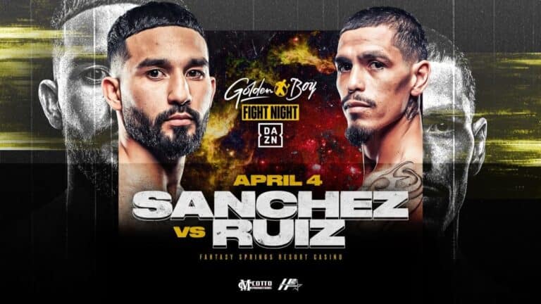 Tickets for Golden Boy Fight Night on DAZN: Sanchez vs. Ruiz are on sale and are priced at $65, $55, $45, and $35 plus applicable fees. Tickets can be purchased at FantasySpringsResort.com or GoldenBoyPromotions.com.