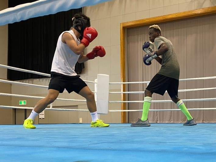 The three Ghanaian amateur pugilists put up a highly spirited display which was admired by the Chef de Mission of Team Ghana, Mr. Mike Aggrey who watched the training judiciously.