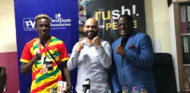 Chief Marketing Manager of Twellium Industrial Company Limited, Mr. Ali Ajami, was on Monday thrilled to meet Ghana’s Bronze medalist at the Tokyo 2020 Olympic Games, 20 year old featherweight boxer Samuel Takyi aka ‘Ring Warrior’ and some members of the team that made Ghana proud at the biggest sports festival in the world.