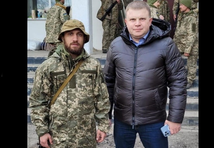 Lomachenko can be seen wearing military fatigues and carrying an assault rifle next to Bilhorod-Dnistrovskyi mayor Vitaliy Grazhdan.