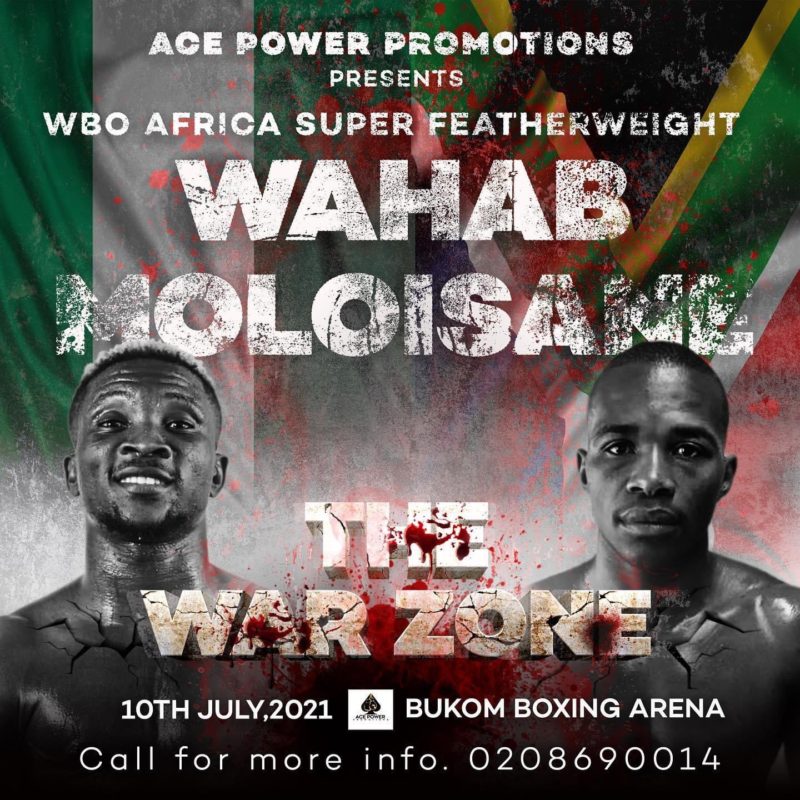 The undefeated Nigerian born Ghanaian resident Joshua Oluwaseun Wahab (20-0, 13KOs) is set to face South African Anthony Moloisane at the Bukom Boxing Arena, Accra, Ghana on July 10 for the WBO Africa Super Featherweight belt.