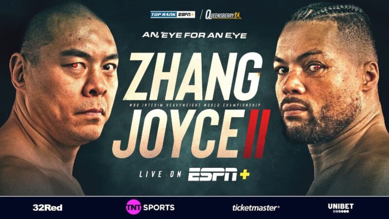 Back in April, Zhang shocked Joyce by handing him his first career defeat with a sixth round stoppage victory. Zhang’s consistent left hand would completely shut the right eye of Joyce – which eventually forced the ringside physician to wave off the fight.
